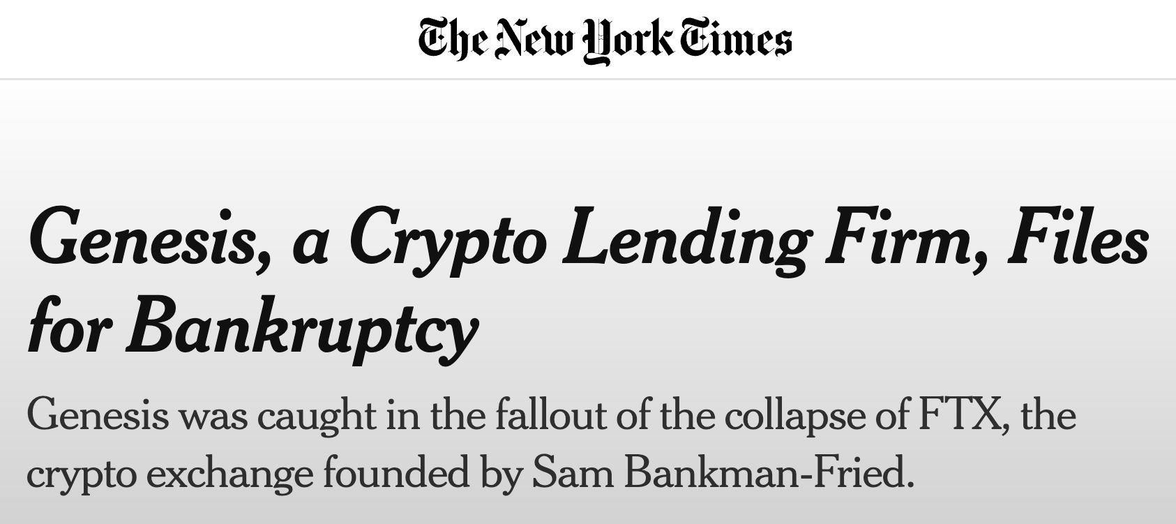 Maybe BitBank finds a large lender, CreditCo, that doesn’t deal with small loans to individuals. BitBank can pool together bitcoin from many borrowers and take out one large loan to fund us all, pocketing the spread. That might seem fine at first, but what if CreditCo runs with the bitcoin or just parks it on an exchange? That's exactly what happened in 2022. Remember Genesis, one of the largest lenders to Three Arrows Capital. They also happened to be one of the largest counterparties to many of the lending platforms at the time: BlockFi, Voyager, Celsius, Gemini, etc.